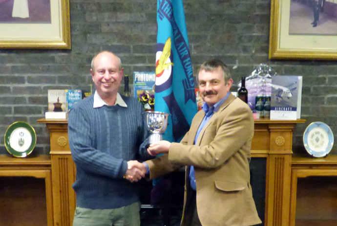 Pictured Membership Officer Mick Headleand ( Left ) and Chairman Steve Richards of the RAF St Mawgan Branch of the Royal Air Forces Association with the Cup awarded to the branch for being the first to retain 100% membership in any one year.